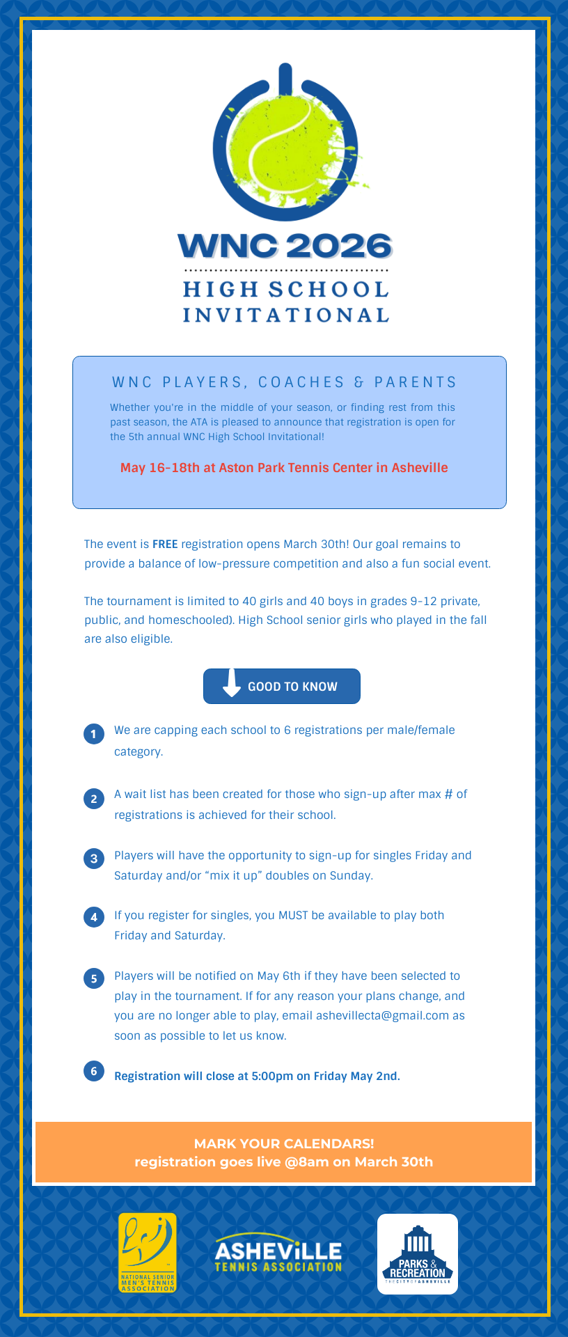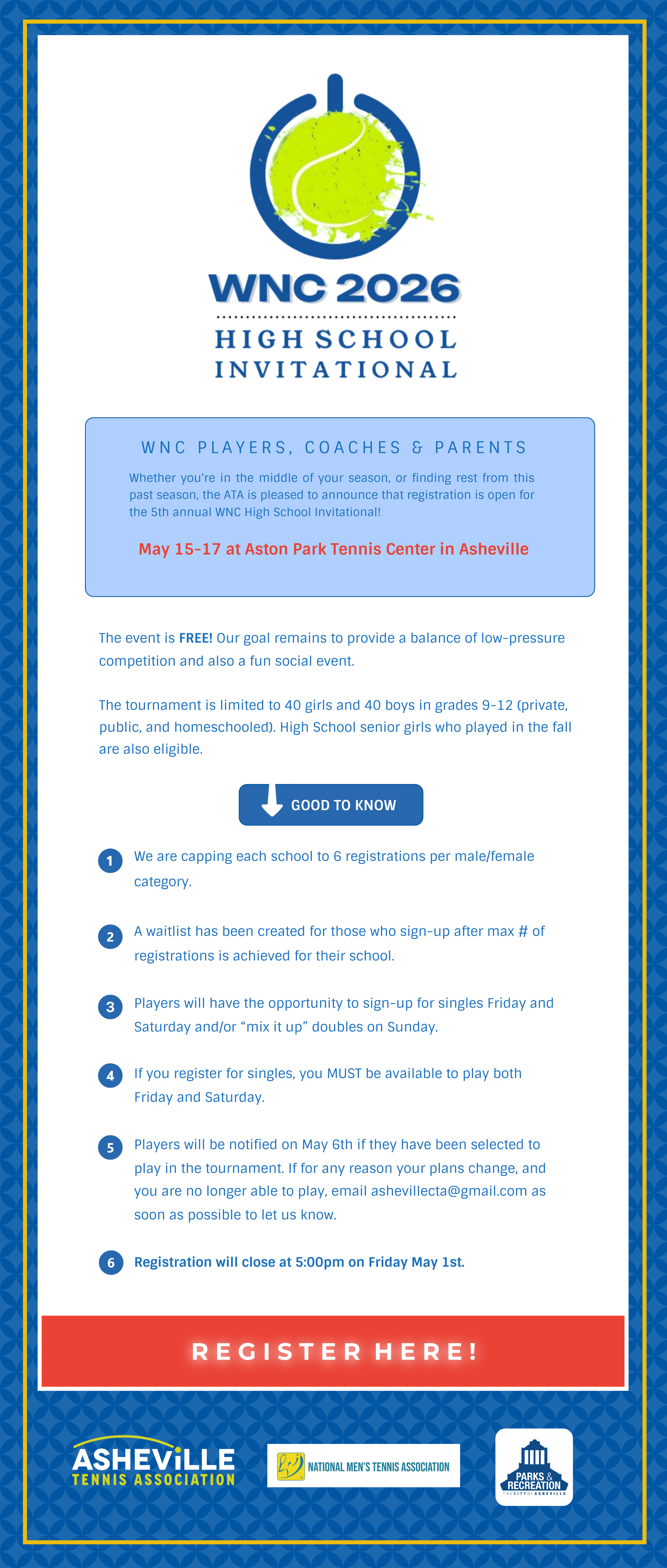 Our mission is to promote and develop the growth of tennis in the Asheville area